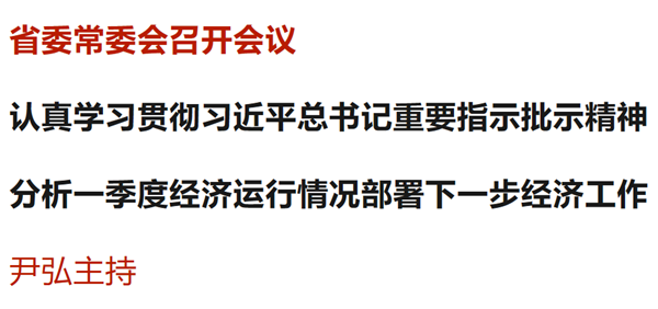 4月21日,省委常委會召開會議,傳達學習習近平總書記近期重要指示批示精神,研究我省貫徹落實意見;分析全省一季度經(jīng)濟運行情況,就做好下一步經(jīng)濟工作進行部署。省委書記尹弘主持會議并講話。