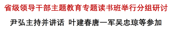 4月24日,省級領(lǐng)導干部學習貫徹習近平新時代中國特色社會主義思想主題教育專題讀書班舉行分組研討。省委書記尹弘主持并對分組研討提出要求,他強調(diào),要帶頭深學篤行習近平新時代中國特色社會主義思想,對標對表習近平總書記視察江西重要講話精神和對江西工作的重要要求,緊密結(jié)合分管領(lǐng)域和本地區(qū)本單位的實際,切實貫通起來學習和思考,運用馬克思主義的立場觀點方法,談認識和體會,談思路和舉措,切實做到學思用貫通、知信行統(tǒng)一。