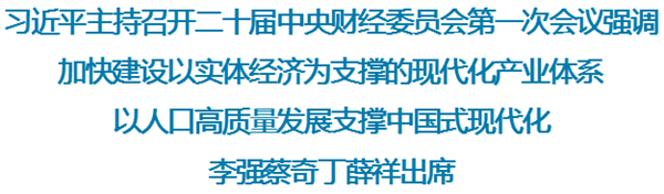 中共中央總書記、國家主席、中央軍委主席、中央財(cái)經(jīng)委員會(huì)主任習(xí)近平5月5日下午主持召開二十屆中央財(cái)經(jīng)委員會(huì)第一次會(huì)議,強(qiáng)調(diào)做好新一屆中央財(cái)經(jīng)委員會(huì)工作,研究加快建設(shè)現(xiàn)代化產(chǎn)業(yè)體系問題,研究以人口高質(zhì)量發(fā)展支撐中國式現(xiàn)代化問題。習(xí)近平在會(huì)上發(fā)表重要講話強(qiáng)調(diào),新一屆中央財(cái)經(jīng)委員會(huì)要繼續(xù)發(fā)揮好制定經(jīng)濟(jì)工作重大方針的作用,進(jìn)一步加強(qiáng)和改善黨中央對(duì)經(jīng)濟(jì)工作的集中統(tǒng)一領(lǐng)導(dǎo)?,F(xiàn)代化產(chǎn)業(yè)體系是現(xiàn)代化國家的物質(zhì)技術(shù)基礎(chǔ),必須把發(fā)展經(jīng)濟(jì)的著力點(diǎn)放在實(shí)體經(jīng)濟(jì)上,為實(shí)現(xiàn)第二個(gè)百年奮斗目標(biāo)提供堅(jiān)強(qiáng)物質(zhì)支撐。人口發(fā)展是關(guān)系中華民族偉大復(fù)興的大事,必須著力提高人口整體素質(zhì),以人口高質(zhì)量發(fā)展支撐中國式現(xiàn)代化。