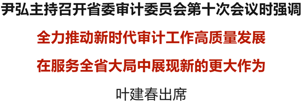 7月11日,省委書記尹弘主持召開省委審計(jì)委員會(huì)第十次會(huì)議,他強(qiáng)調(diào),全省各級(jí)審計(jì)機(jī)關(guān)要深入學(xué)習(xí)貫徹習(xí)近平總書記關(guān)于審計(jì)工作的重要論述,牢牢把握新時(shí)代審計(jì)工作的目標(biāo)要求,充分發(fā)揮審計(jì)監(jiān)督職能作用,全力推動(dòng)新時(shí)代審計(jì)工作高質(zhì)量發(fā)展,在服務(wù)全省大局中展現(xiàn)新的更大作為。
