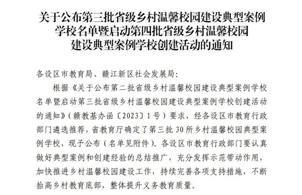 《關于公布第三批省級鄉(xiāng)村溫馨校園建設