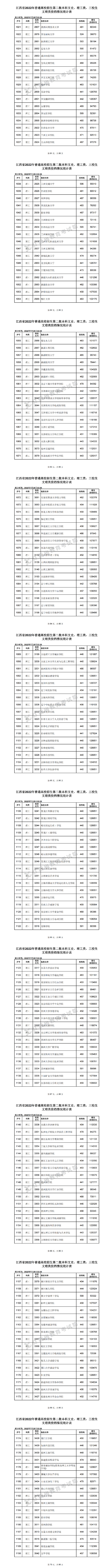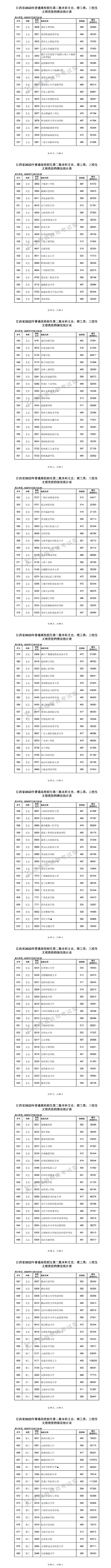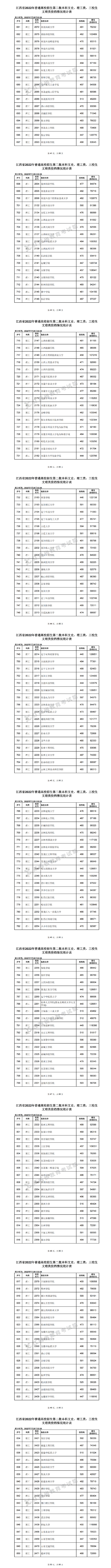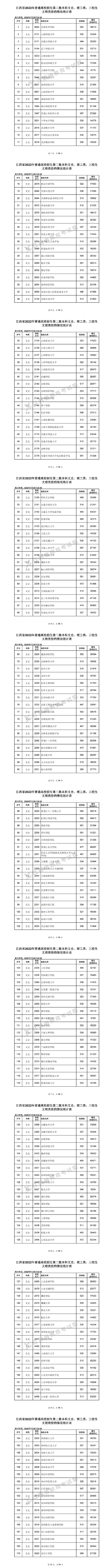參加第一批本科錄取的文史類院校有387所,投檔滿額的院校有380所,投檔分?jǐn)?shù)居前的院校分別是: