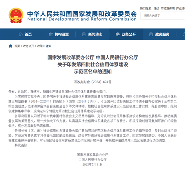 8月7日,國家發(fā)展改革委辦公廳、中國人民銀行辦公廳聯(lián)合印發(fā)《關于印發(fā)第四批社會信用體系建設示范區(qū)名單的通知》,確定68個地區(qū)為第四批社會信用體系建設示范區(qū),萍鄉(xiāng)市成功入選,成為我省唯一國家社會信用體系建設示范區(qū)。