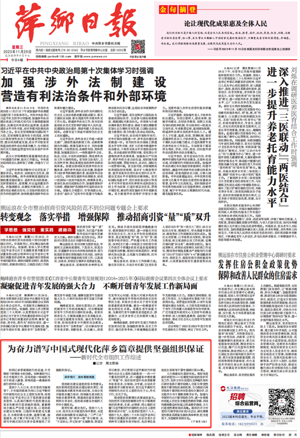 11月29日,萍鄉(xiāng)日報(bào)刊發(fā)文章《為奮力譜寫中國式現(xiàn)代化萍鄉(xiāng)篇章提供堅(jiān)強(qiáng)組織保證——新時(shí)代全市組織工作綜述》。
