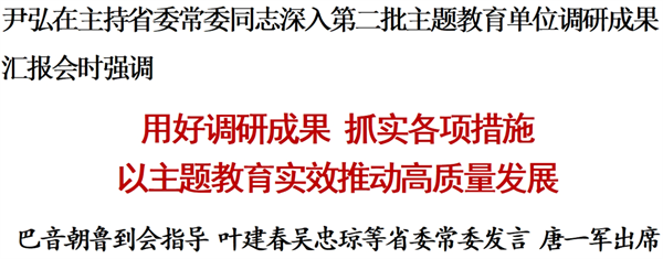 省委常委同志深入第二批主題教育單位調(diào)研成果匯報(bào)會(huì)召開 尹弘講話 巴音朝魯?shù)綍?huì)指導(dǎo)