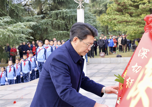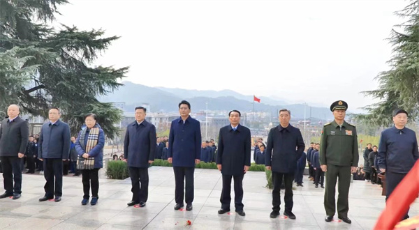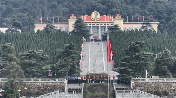 劉爍來(lái)到毛澤東同志雕像的碑座前,神情莊重地整理花籃上的紅色緞帶,駐足凝視,代表全市黨、政、軍、人民團(tuán)體及各界群眾敬獻(xiàn)花籃,并帶領(lǐng)全體人員一起向毛澤東同志雕像三鞠躬。隨后,全體在場(chǎng)人員按順時(shí)針?lè)较?,繞行紀(jì)念碑一周,瞻仰毛澤東同志雕像,表達(dá)對(duì)毛澤東同志的崇高敬意和無(wú)限追思。