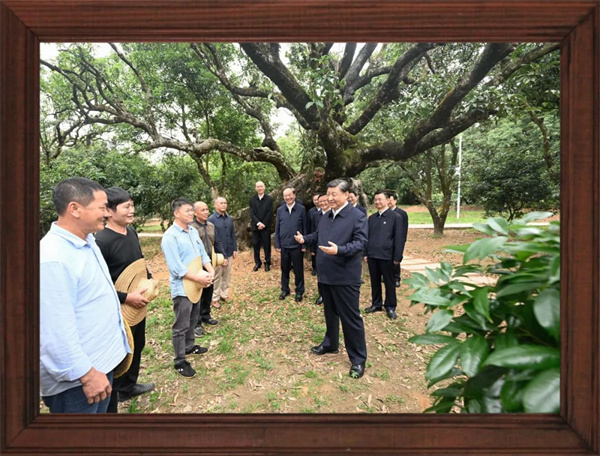 古老荔枝樹(shù)下,總書(shū)記同現(xiàn)場(chǎng)技術(shù)人員親切交流,指出要著力做好“土特產(chǎn)”文章,以產(chǎn)業(yè)振興促進(jìn)鄉(xiāng)村全面振興。