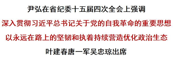 1月15日,省紀委十五屆四次全會召開。省委書記尹弘出席并講話,他強調(diào),要深入學(xué)習貫徹習近平總書記關(guān)于黨的自我革命的重要思想,以永遠在路上的堅韌和執(zhí)著,堅持標本兼治、系統(tǒng)施治,一體推進不敢腐、不能腐、不想腐,堅決打贏反腐敗斗爭攻堅戰(zhàn)、持久戰(zhàn),持續(xù)營造、優(yōu)化政治生態(tài),為奮力譜寫中國式現(xiàn)代化江西篇章提供堅強保障。