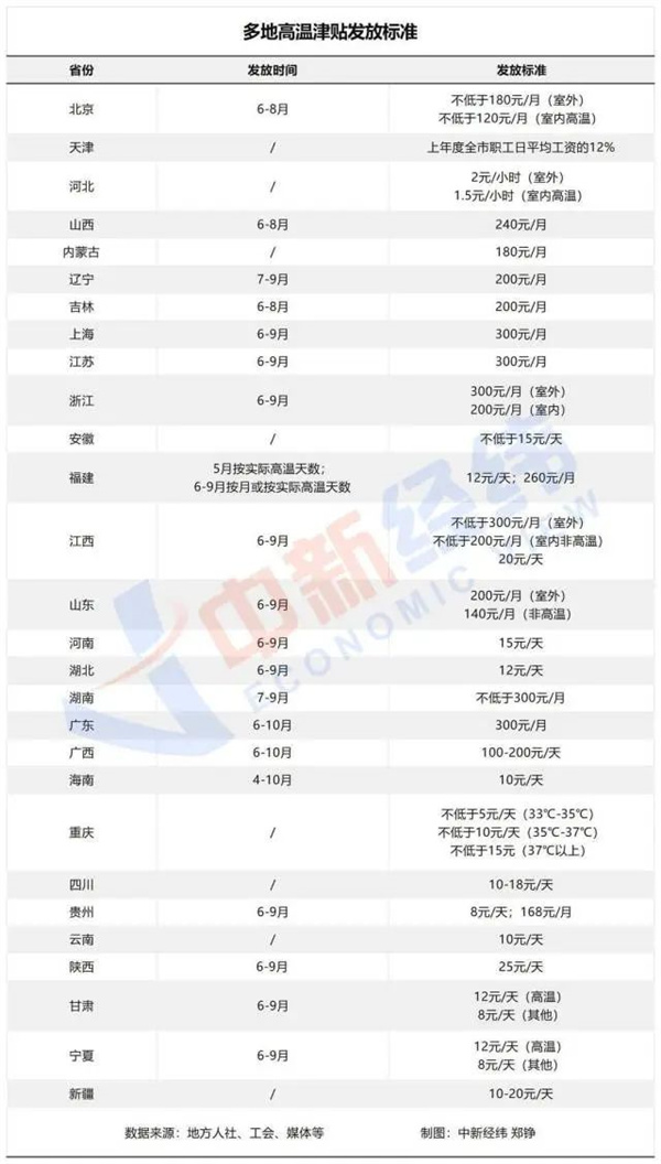 進(jìn)入6月,高溫來襲,根據(jù)規(guī)定,多地“打工人”自6月開始,可以領(lǐng)取高溫津貼,補(bǔ)貼多在每月100元-300元不等。