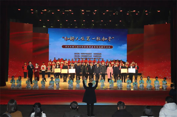 “隊員們,你們知道我們每天佩戴的紅領(lǐng)巾是怎么來的嗎?”2024年12月27日,以“扣好人生第一??圩印睘橹黝}的萍鄉(xiāng)市第二屆學(xué)校思政課成果現(xiàn)場展示活動在湘東大劇院舉行。以兩位虛構(gòu)人物“萍萍”和“東東”的成長歷程為主線,通過情景歌舞、沉浸式演繹等多種藝術(shù)形式,將思政課成果融入故事演繹之中,讓現(xiàn)場觀眾深受觸動。思政工作研究成果豐碩,在《黨建》雜志刊發(fā)理論文章《安源黨校:微光成炬?zhèn)餍交稹?,《將軍農(nóng)民甘祖昌“萬里長征不歇腳”的精神品質(zhì)及其現(xiàn)實啟示》獲全省2024年度思政論文一等獎,推進建立紅色基因傳承創(chuàng)新工作機制獲2023年度江西省基層文化體制改革優(yōu)秀項目。