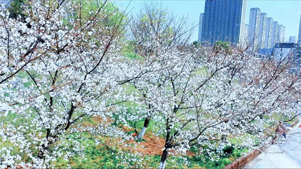 "每年春天都會來這條櫻花步道走走,看著這些潔白的花朵靜靜綻放,就覺得平凡日子里處處都是美好。"正在拍照的市民邱女士笑著說道。