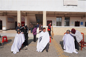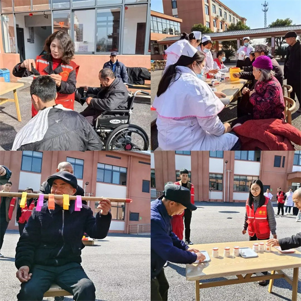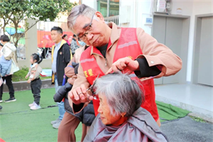 現(xiàn)場,志愿者自帶工具,動作嫻熟地為老人們修剪頭發(fā)。在醫(yī)療健康服務區(qū),來自縣中醫(yī)院的醫(yī)護人員有序地為老人們開展免費義診。社工志愿者安排的互動游戲也正在進行中,老人們圍坐在一起,聽音樂跟節(jié)奏輕輕拍動身體,簡單的動作,鍛煉老人們手腦協(xié)調(diào)能力,敬老院內(nèi)時不時傳來一陣陣歡快的笑聲。