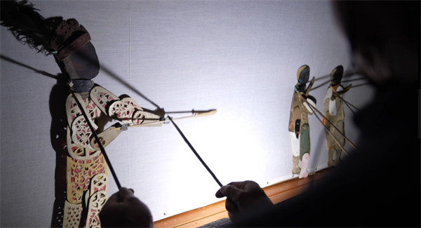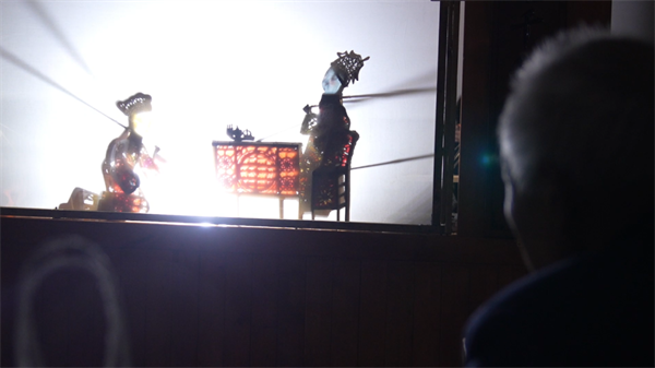 角色的一舉手、一投足,都因為藝人們情深意切的唱白變得更加生動。走進幕后,皮影藝人正靈活地操縱皮影人物做出行走、奔跑等各種動作,古老的皮影人物惟妙惟肖地呈現(xiàn)在幕布上。幕前,時時有人歡呼喝彩。