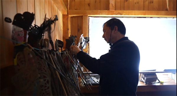 上栗皮影戲市級代表性傳承人肖雪萍說,從1979年開始跟著爺爺學皮影戲,如今已有46年了。演皮影戲,最重要的就是投入情感,讓大家看得歡喜、有味道。