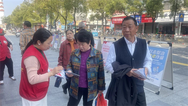 "阿姨,遇到陌生來(lái)電要求轉(zhuǎn)賬的,一定要做到不聽、不信、不轉(zhuǎn)賬。"在萍青廣場(chǎng)上,志愿者陳艷萍正手持反詐手冊(cè),向從超市購(gòu)物出來(lái)的張大媽耐心講解。