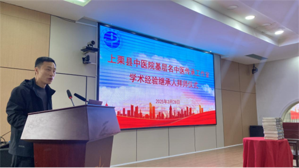 2025年3月28日?,上栗縣衛(wèi)健委五樓會(huì)議室內(nèi)洋溢著濃厚的中醫(yī)藥文化氣息。由?上栗縣中醫(yī)院?主辦的?“基層名中醫(yī)傳承工作室學(xué)術(shù)經(jīng)驗(yàn)繼承人拜師儀式”?與?“上栗縣2025年第一期中醫(yī)藥適宜技術(shù)推廣培訓(xùn)班”?在此隆重舉行。活動(dòng)以“傳承經(jīng)典、守正創(chuàng)新”為主題,旨在推動(dòng)中醫(yī)藥學(xué)術(shù)精髓薪火相傳,提升基層中醫(yī)藥服務(wù)能力,為健康上栗建設(shè)注入新動(dòng)能??h衛(wèi)健委、縣中醫(yī)院及全縣各級(jí)醫(yī)療機(jī)構(gòu)近200人參加活動(dòng)。