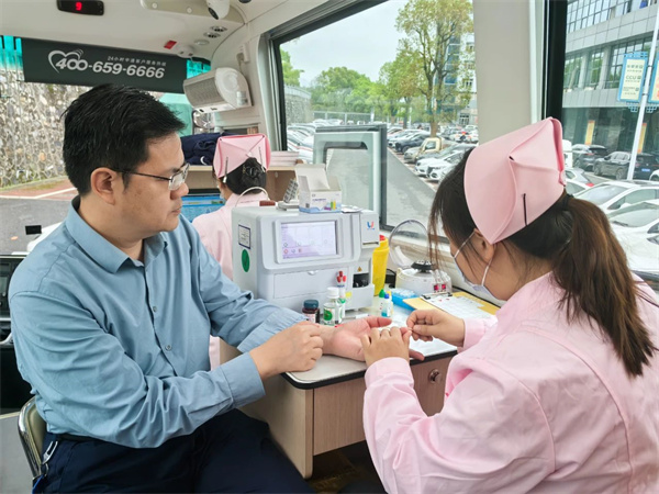 在醫(yī)院門診樓前,當(dāng)市中心血站的獻(xiàn)血車來(lái)到市二醫(yī)院時(shí),醫(yī)務(wù)人員早已排好隊(duì),在完成登記、填表、初篩等準(zhǔn)備工作后,有序地走上獻(xiàn)血車,紛紛挽起衣袖,捐獻(xiàn)自己的熱血。
