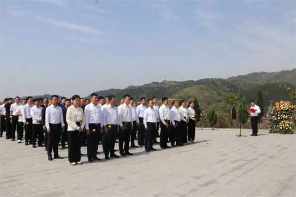 活動(dòng)現(xiàn)場(chǎng),烈士陵園內(nèi)莊嚴(yán)肅穆,全體人員整齊列隊(duì),齊唱《中華人民共和國(guó)國(guó)歌》,向革命先烈默哀致敬。隨后,伴隨著低回的獻(xiàn)花曲,禮兵向烈士敬獻(xiàn)花籃,表達(dá)對(duì)英烈的深切緬懷和崇高敬意。
