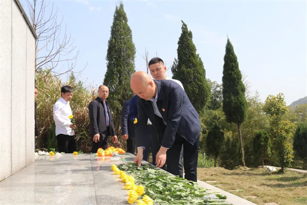 全體人員手捧鮮花,一步步走向烈士紀(jì)念碑瞻仰,將鮮花輕輕放在墓碑前,深情憑吊烈士英魂,深切緬懷豐功偉績(jī)。