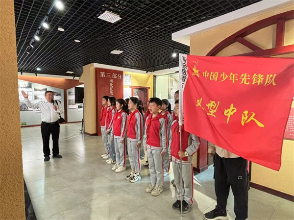 ▲臘市鎮(zhèn)鳳凰小學(xué)組織劉型中隊(duì)的隊(duì)員參觀劉型生平業(yè)績陳列館