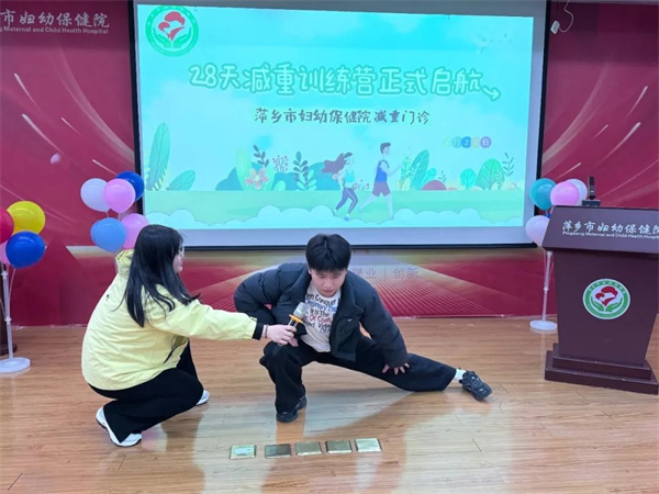 3月29日,萍鄉(xiāng)市婦幼保健院舉辦“28天減重訓練營”第二期啟動儀式?;顒訁R聚醫(yī)學專家、營養(yǎng)學專家、運動管理師及近30名減重學員,共同開啟科學體重管理新征程。