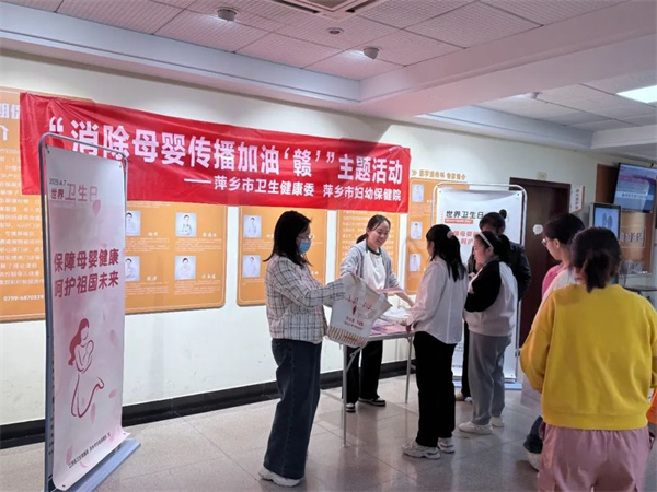 2025年4月7日,萍鄉(xiāng)市婦幼保健院在門(mén)診3樓開(kāi)展了“保障母嬰健康 呵護(hù)祖國(guó)未來(lái)”主題宣傳活動(dòng)?;顒?dòng)現(xiàn)場(chǎng),通過(guò)設(shè)立咨詢臺(tái)、懸掛宣傳橫幅、發(fā)放健康宣傳手冊(cè)等方式,向群眾普及艾滋病、梅毒和乙肝的母嬰傳播途徑、預(yù)防措施及國(guó)家免費(fèi)篩查、治療政策,倡導(dǎo)孕產(chǎn)婦主動(dòng)參與產(chǎn)前篩查和干預(yù),降低母嬰傳播風(fēng)險(xiǎn);并向廣大群眾宣傳孕產(chǎn)期保健等科學(xué)知識(shí),耐心解答群眾疑問(wèn),幫助孕產(chǎn)婦和家庭樹(shù)立科學(xué)的健康觀念。