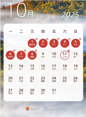 其中,國慶中秋假期:10月1日至8日放假調(diào)休,共8天。所有收費(fèi)公路(含機(jī)場高速、收費(fèi)橋梁和隧道)免征小型客車通行費(fèi)。10月9日0時(shí)起,恢復(fù)正常收費(fèi)。