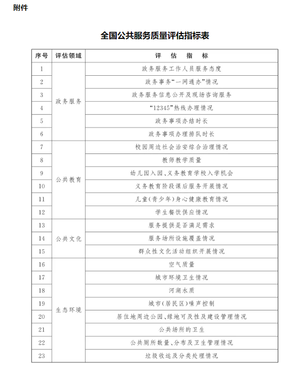 附件:全國(guó)公共服務(wù)質(zhì)量評(píng)估指標(biāo)表