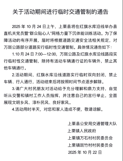 關(guān)于活動期間進行臨時交通管制的通告