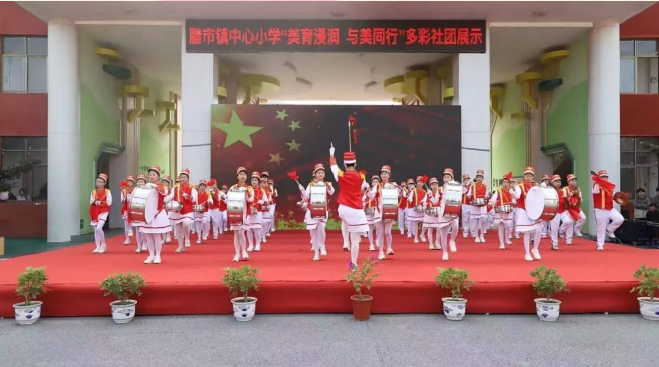 活動(dòng)現(xiàn)場(chǎng)氛圍熱烈,各校創(chuàng)新采用室內(nèi)外相結(jié)合的展示模式,全方位呈現(xiàn)社團(tuán)風(fēng)采:下埠鎮(zhèn)第一小學(xué)的功夫扇表演剛勁利落、器樂演奏鏗鏘有力,盡顯新時(shí)代學(xué)子蓬勃朝氣;云程學(xué)校的器樂聯(lián)奏、啦啦操排舞與武術(shù)表演接連登場(chǎng),師生協(xié)作展現(xiàn)昂揚(yáng)活力;臘市鎮(zhèn)中心小學(xué)的鼓號(hào)、啦啦操表演節(jié)奏明快,傳遞出童真與朝氣。
