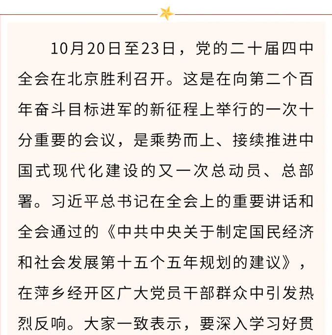 黨的二十屆四中全會精神在萍鄉(xiāng)經(jīng)開區(qū)引發(fā)熱烈反響①