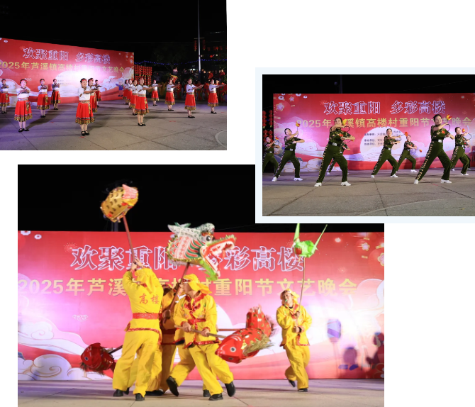 在蘆溪鎮(zhèn)高樓村,一場(chǎng)“歡聚高樓 多彩高樓”文藝晚會(huì)為村民奉獻(xiàn)了一場(chǎng)視聽(tīng)盛宴。晚會(huì)在大型龍燈表演中拉開帷幕,金龍隨著鼓點(diǎn)翻騰跳躍,氣勢(shì)恢宏;散龍靈活跳躍,扣人心弦,迅速點(diǎn)燃了現(xiàn)場(chǎng)氛圍;威風(fēng)鑼鼓敲響奮進(jìn)節(jié)拍,鏗鏘有力的鼓點(diǎn)傳遞著豐收的喜悅與對(duì)生活的熱忱;集體舞《歌唱祖國(guó)》用整齊的舞步、嘹亮的歌聲抒發(fā)愛(ài)國(guó)情懷,舞蹈《豐收喜洋洋》《喜氣洋洋》以活潑歡快的節(jié)奏展現(xiàn)鄉(xiāng)村富足景象,健身操《打靶歸來(lái)》則將軍旅風(fēng)采與健身元素相結(jié)合,表演者精神抖擻、活力滿滿;登場(chǎng)的書法、嗩吶表演別具韻味,高亢悠揚(yáng)的嗩吶聲縈繞耳畔,書法家在舞臺(tái)中央揮毫潑墨,“福滿高樓”四個(gè)大字一氣呵成,筆墨飄香間為老年朋友送上最質(zhì)樸真摯的節(jié)日祝福,將晚會(huì)氣氛推向高潮。