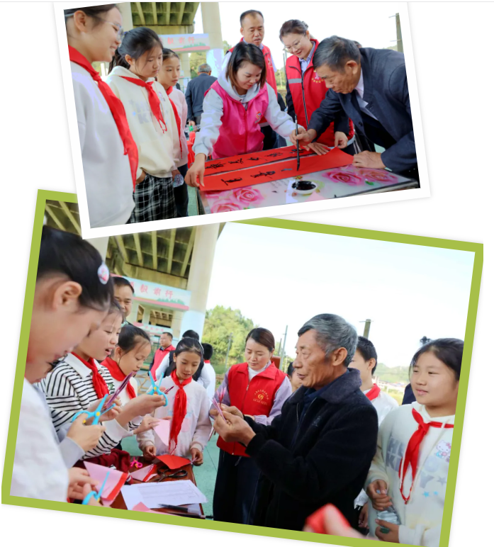 故事的余溫未散,活動(dòng)現(xiàn)場(chǎng)隨即變身為傳統(tǒng)文化課堂。筆墨紙硯前,黃賢輝老人揮毫寫下“少年強(qiáng)則國強(qiáng)”等殷殷寄語;剪刀翻飛間,葉賢良老人巧手剪出寓意吉祥的“六喜臨門”窗花。孩子們目不轉(zhuǎn)睛,在鼓勵(lì)下好奇地提筆、運(yùn)剪。一老一少,手把手之間,完成的是技藝的啟蒙,更是情感的傳遞與文化的接力。